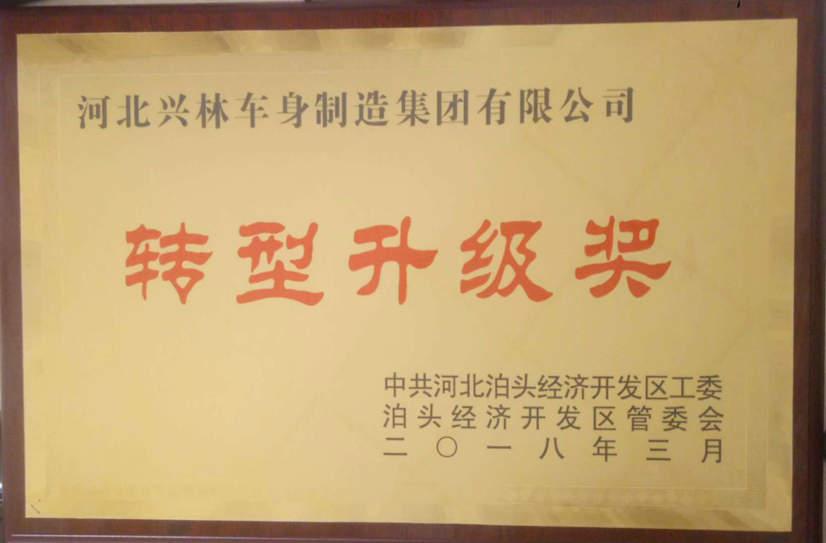 近日由中共河北泊頭經(jīng)濟開發(fā)區(qū)工委、泊頭市經(jīng)濟開發(fā)區(qū)管委會評定,河北興林車身制造集團有限公司榮獲“轉(zhuǎn)型升級獎”稱號。