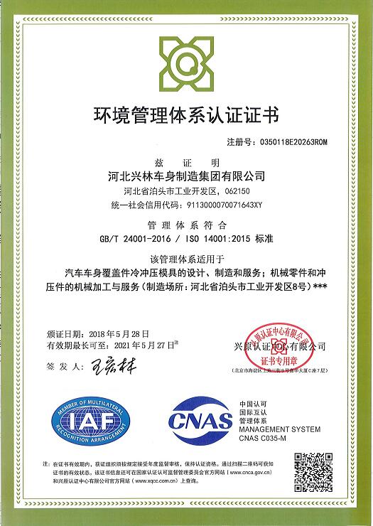 熱烈祝賀公司順利通過ISO14001:2015環(huán)境管理體系認證